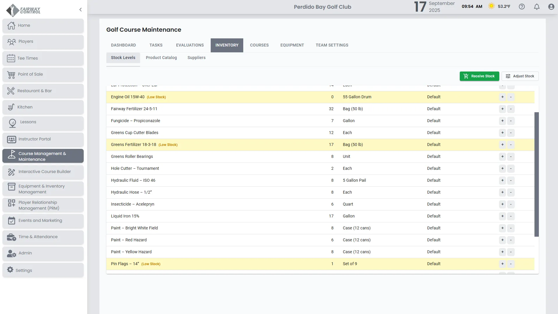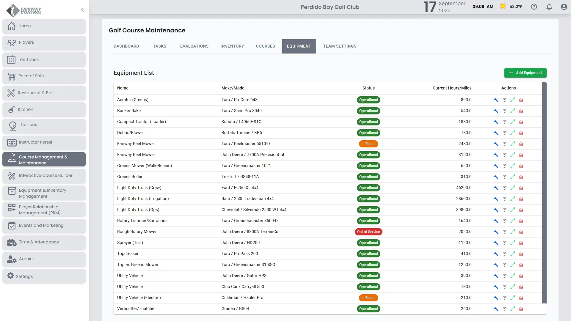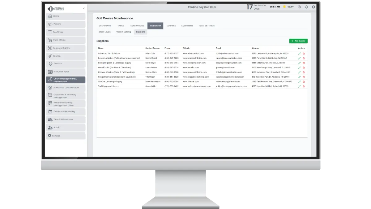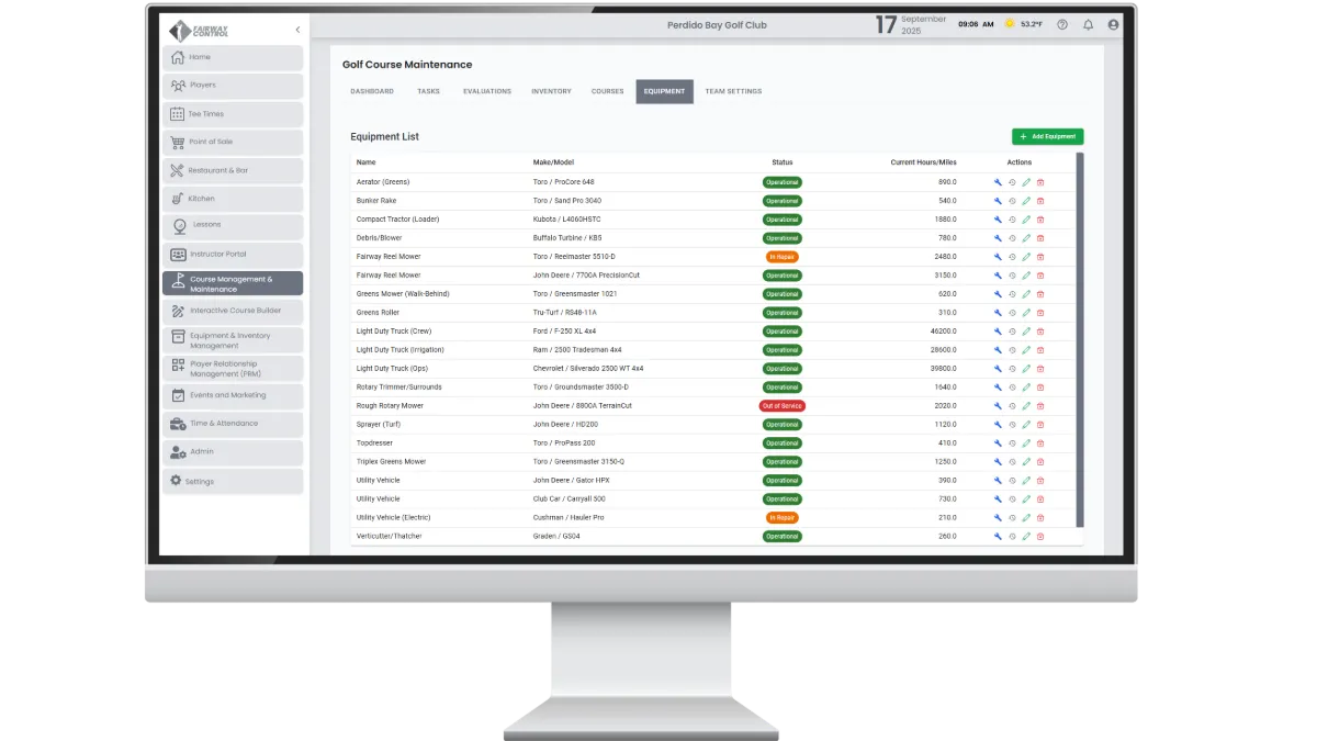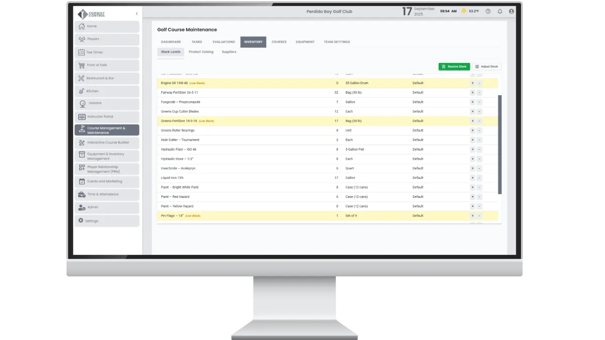 Keep course maintenance organized in one connected system. Track inventory, monitor equipment, and evaluate conditions with tools built for golf.