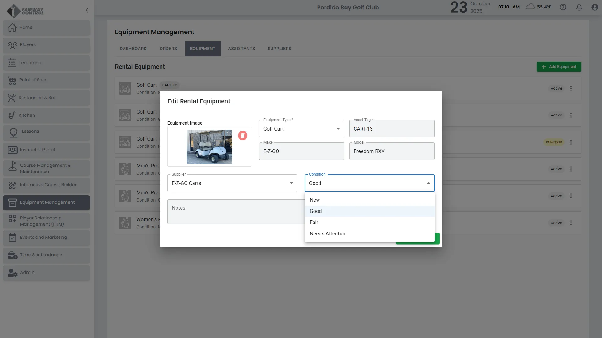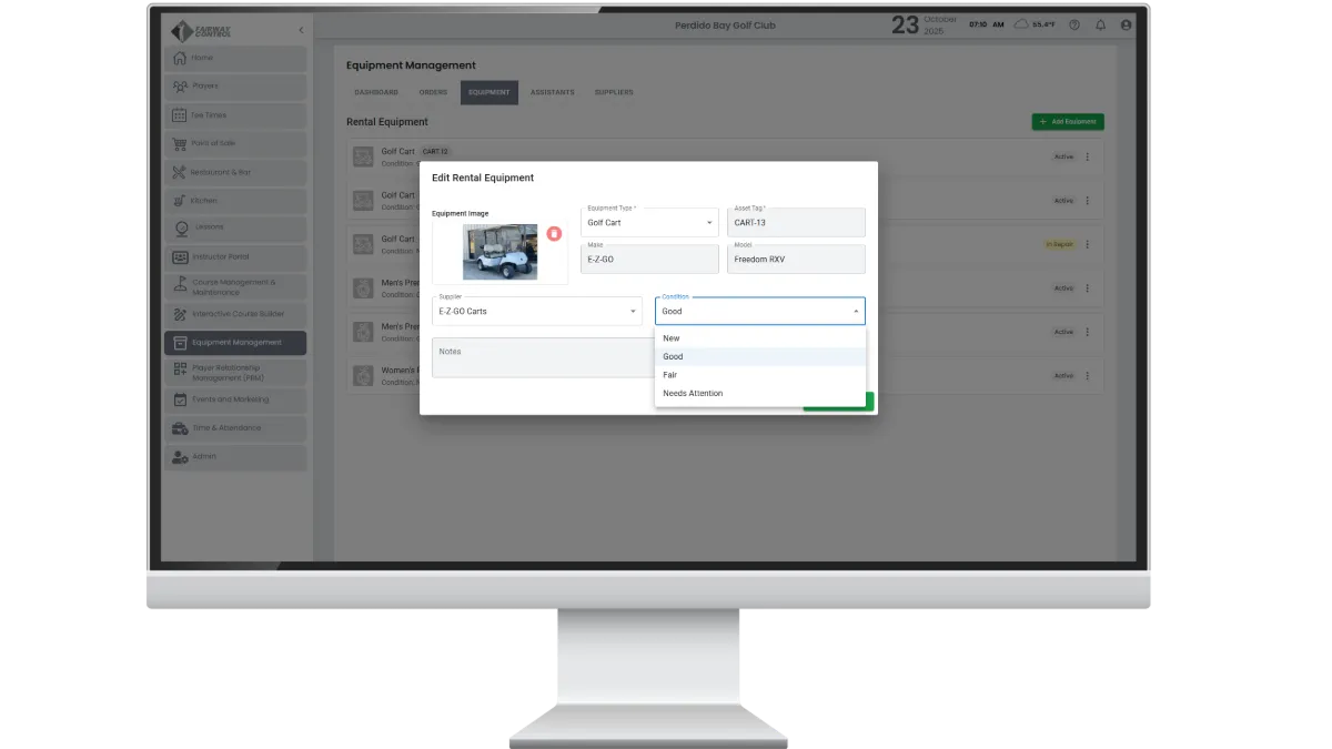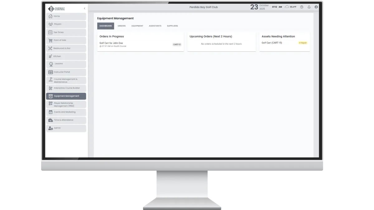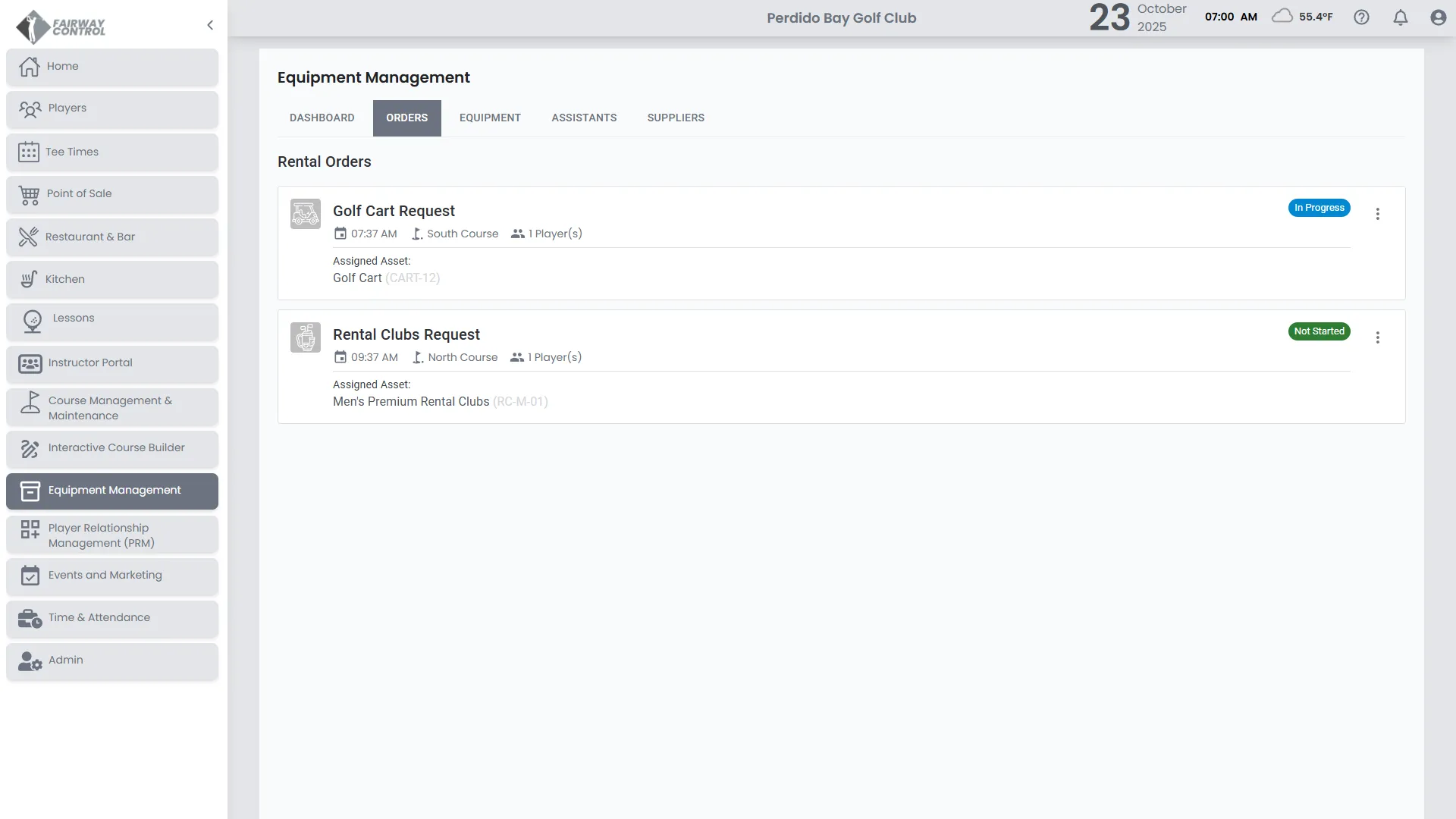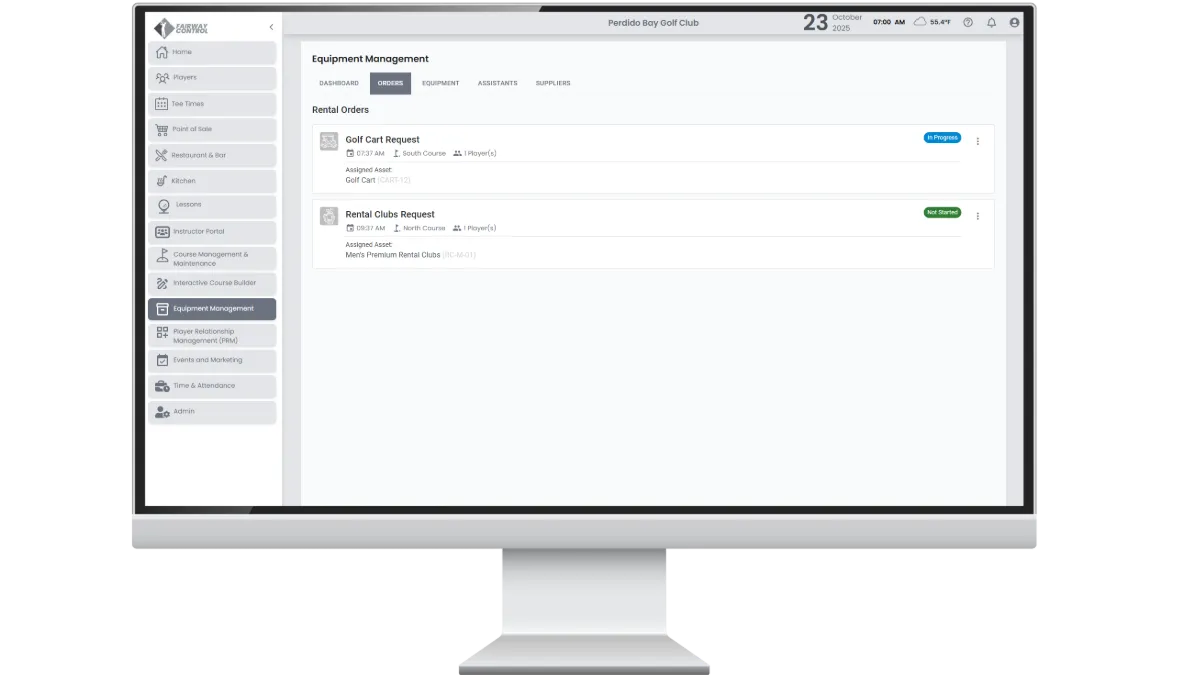 Link carts and rentals directly to scheduled tee times. When play begins, assigned equipment is automatically marked as in use.