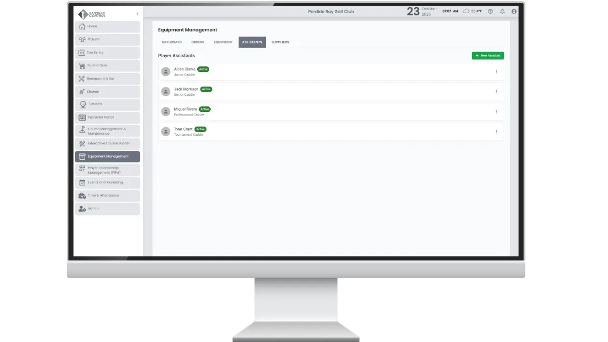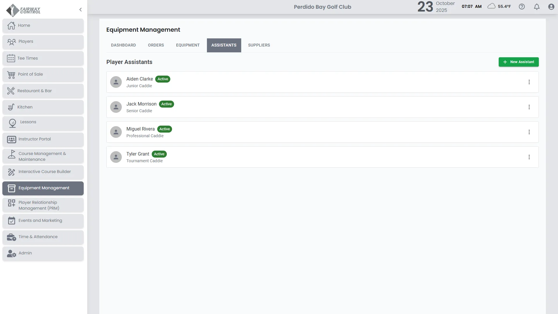Assign, track, and schedule caddies for players or groups. Monitor availability and hours with full transparency.