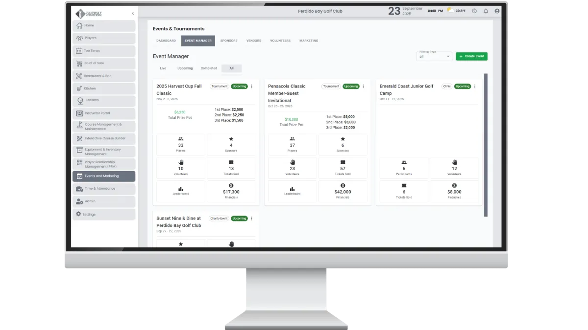 From private club outings to public tournaments, Fairway Control ensures every event runs efficiently and professionally.