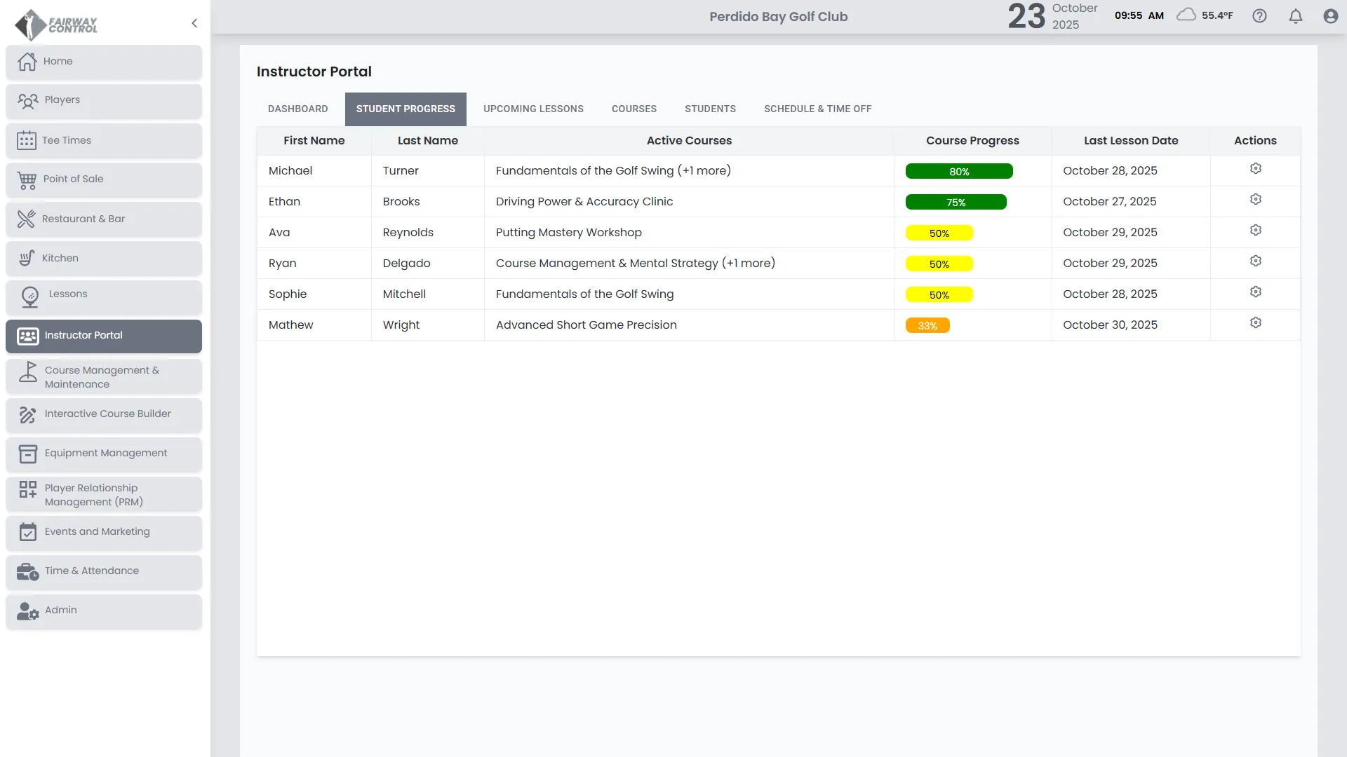 View upcoming sessions, student lists, and lesson details from a single, easy-to-navigate dashboard.