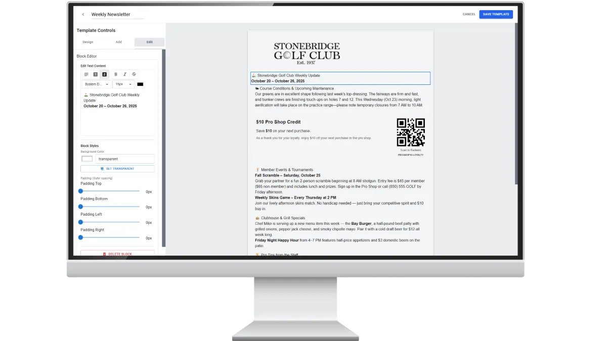 Use data to recommend offers based on player history and preferences. Weekday golfers get twilight-rate deals, while weekend members receive premium perks. Personalization turns engagement into reliable revenue.