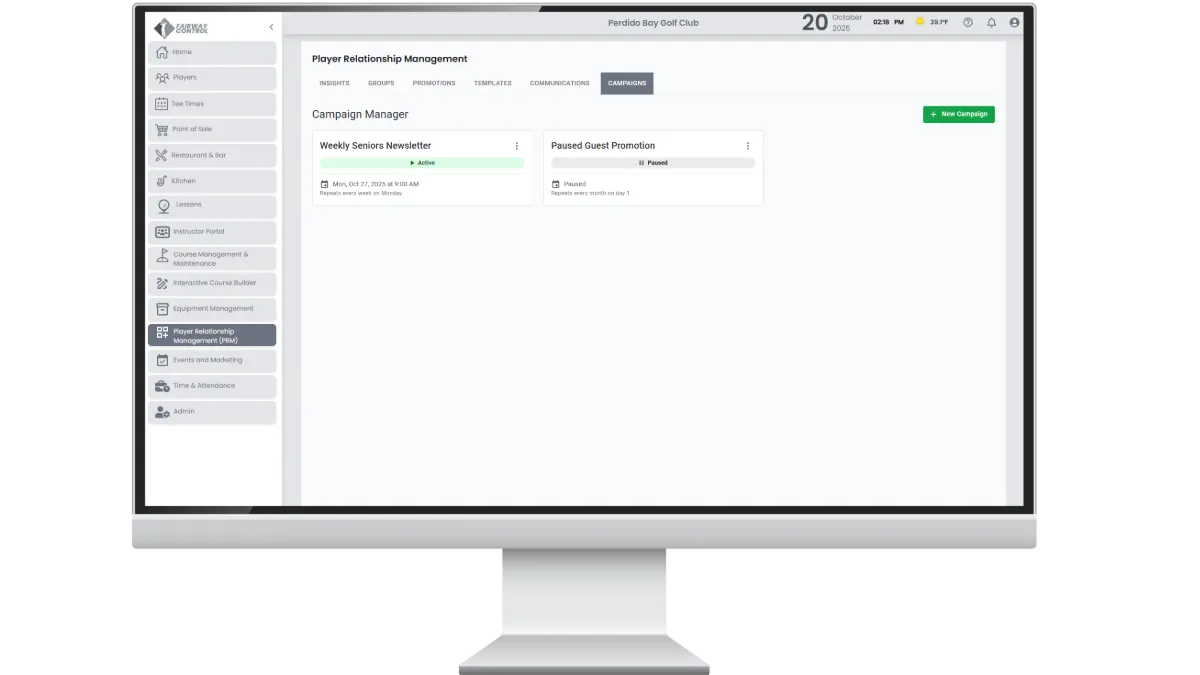 Turn player data into meaningful connections. Fairway Control gives your team the insights to build loyalty, increase revenue, and keep every player coming back.