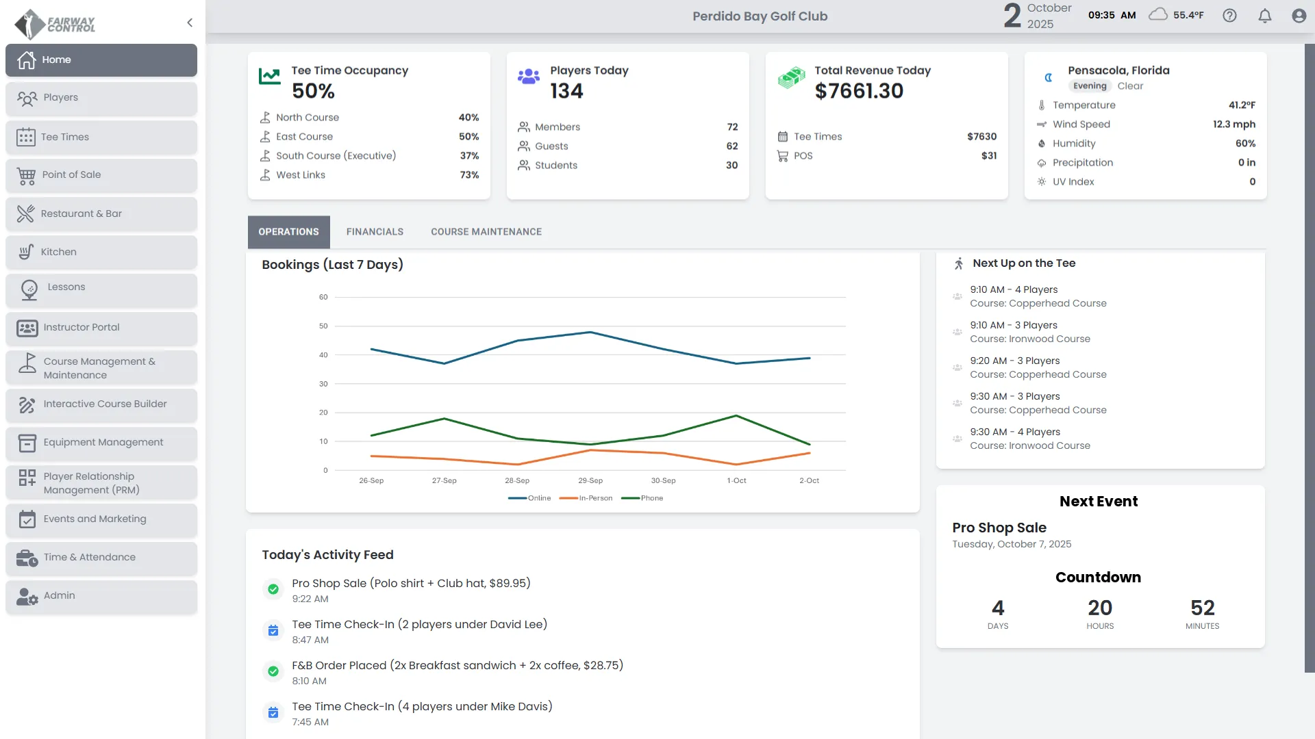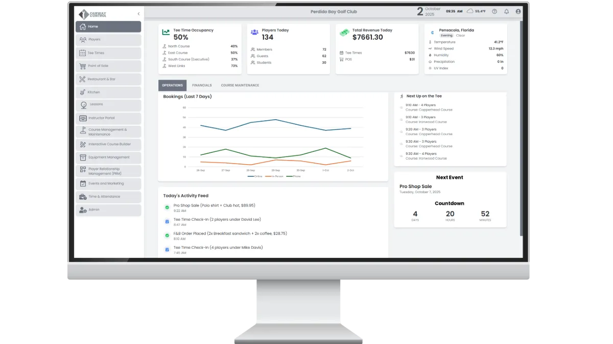Make smarter decisions with data that covers every part of your club. Fairway Control delivers clear reports and detailed analytics across sales, tee times, lessons, events, and more.