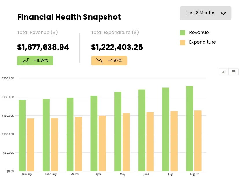 Monitor daily, weekly, and monthly revenue as it happens. Break down earnings by department, service, or location for complete visibility.