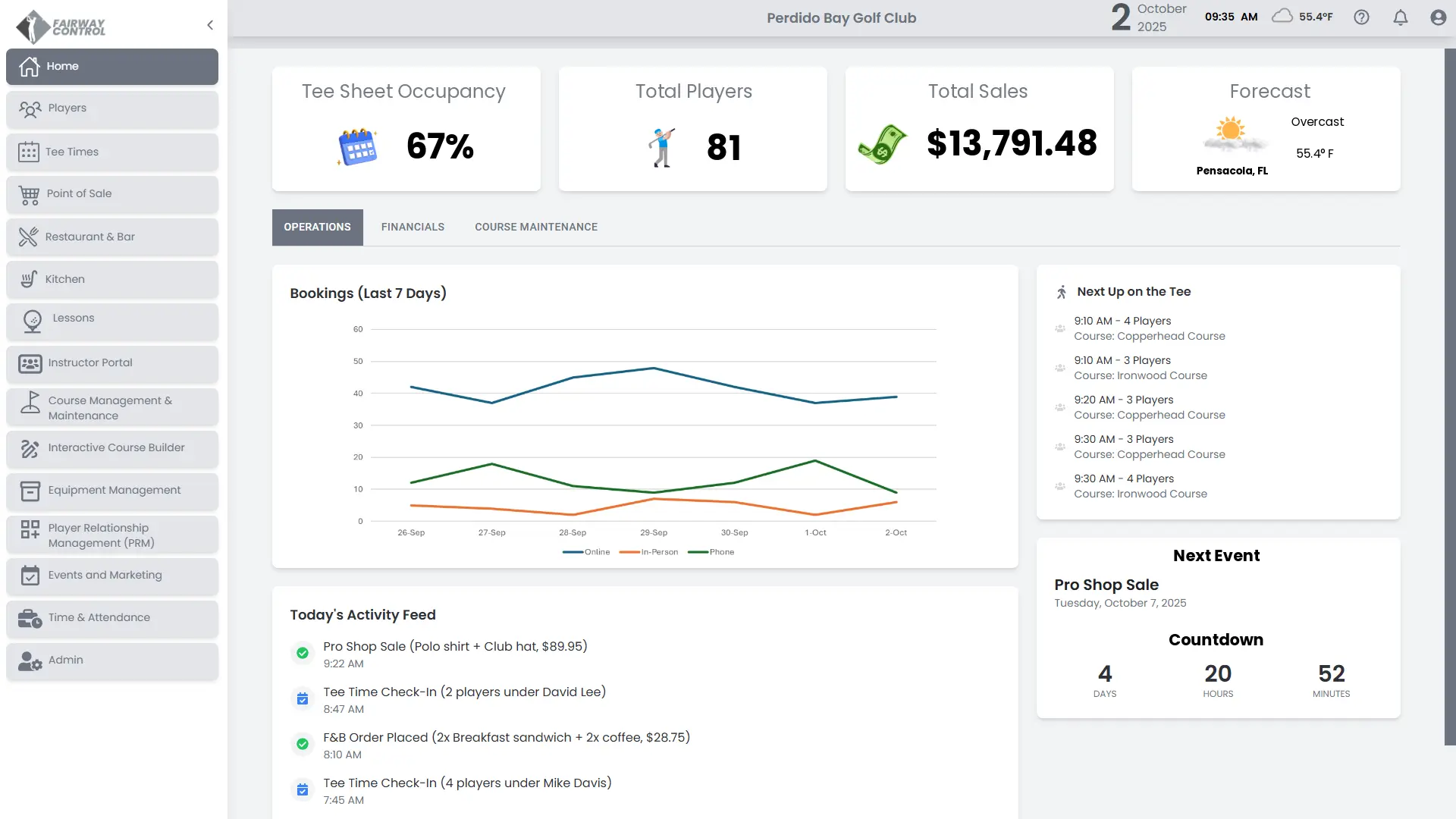 Track revenue across the pro shop, food and beverage, events, and more. Real-time reporting highlights where profits are growing.