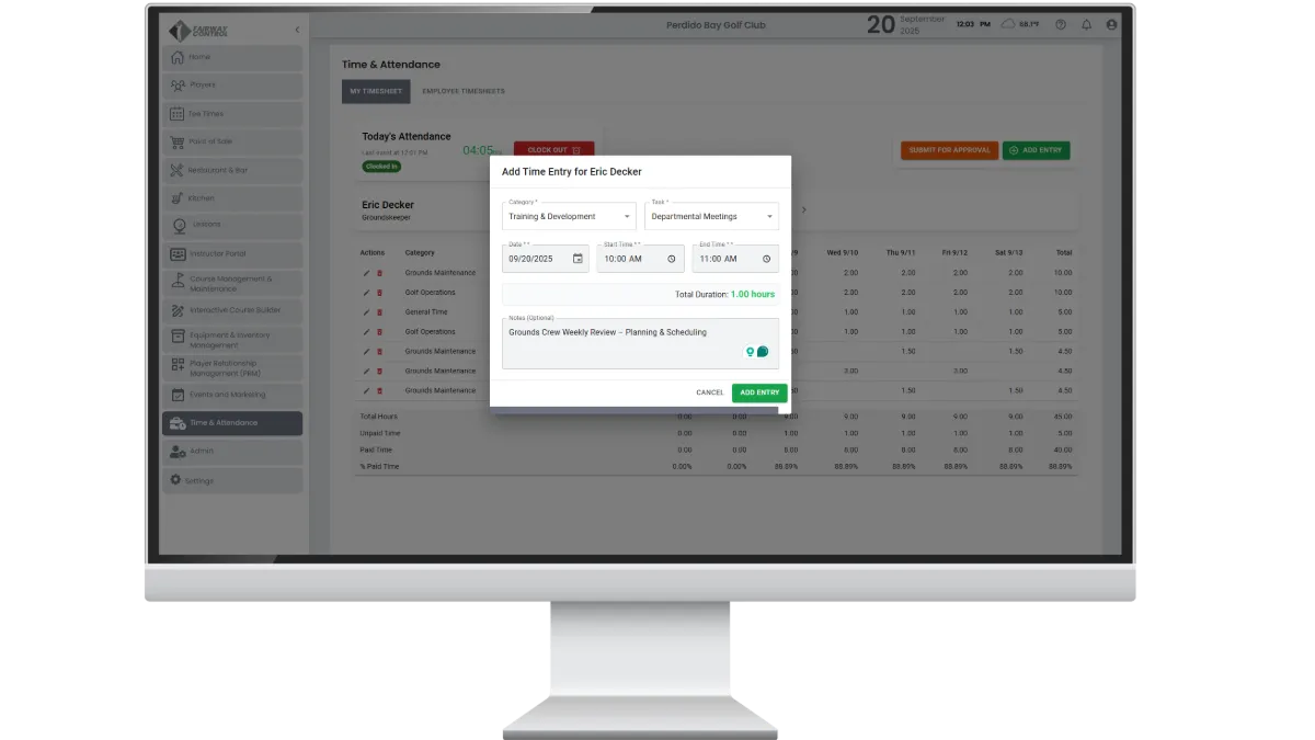 Track time, schedules, and attendance while unlocking analytics that keep your entire course running smoothly.