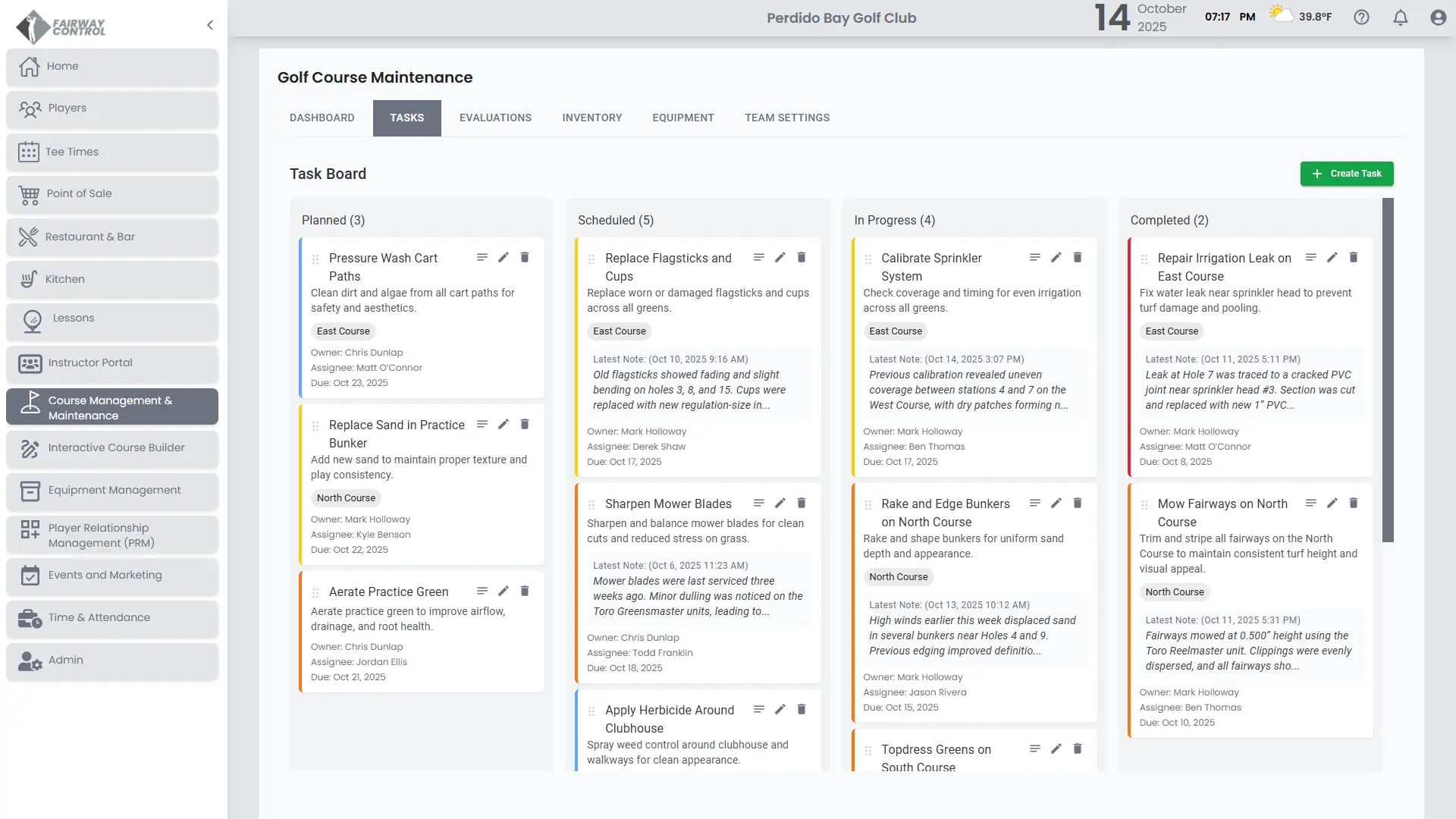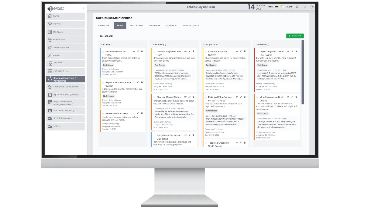 Coordinate crews, monitor turf, and track maintenance needs with a platform built for course operations.