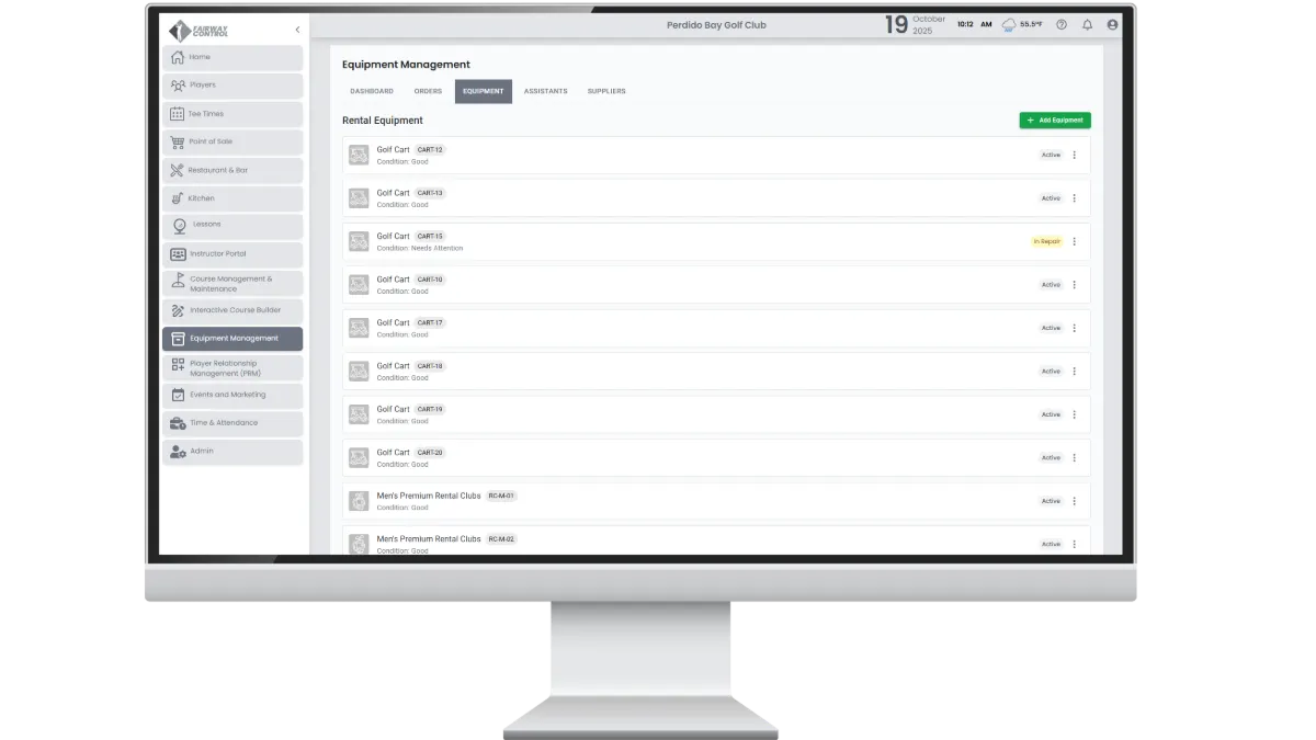 Track golf carts, caddies, and rental gear with real-time visibility and easy check-in and check-out.
