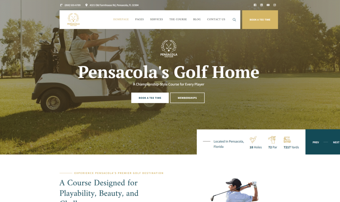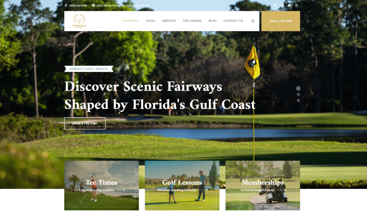 A clean, modern design that highlights your course’s natural scenery and creates a strong first impression.