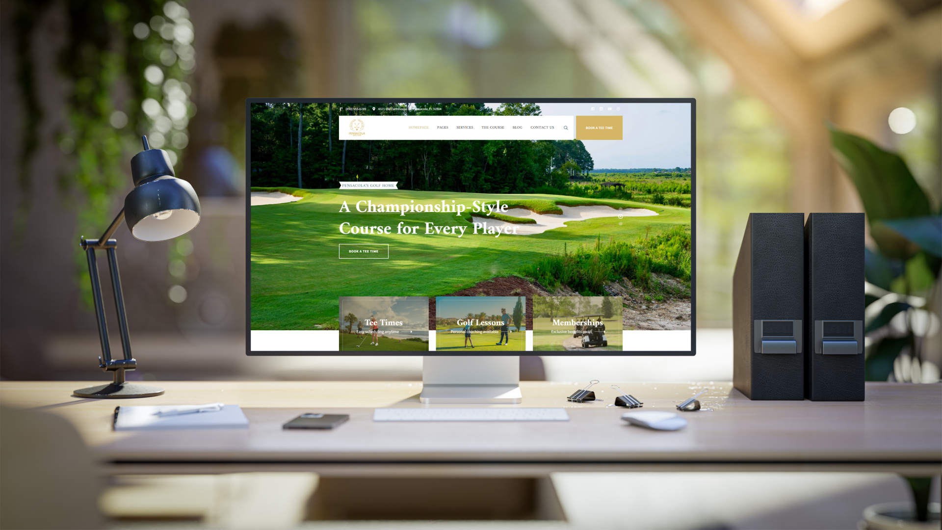 Clean, modern, custom golf course websites with integrated booking, lessons, events, and pro shop features.